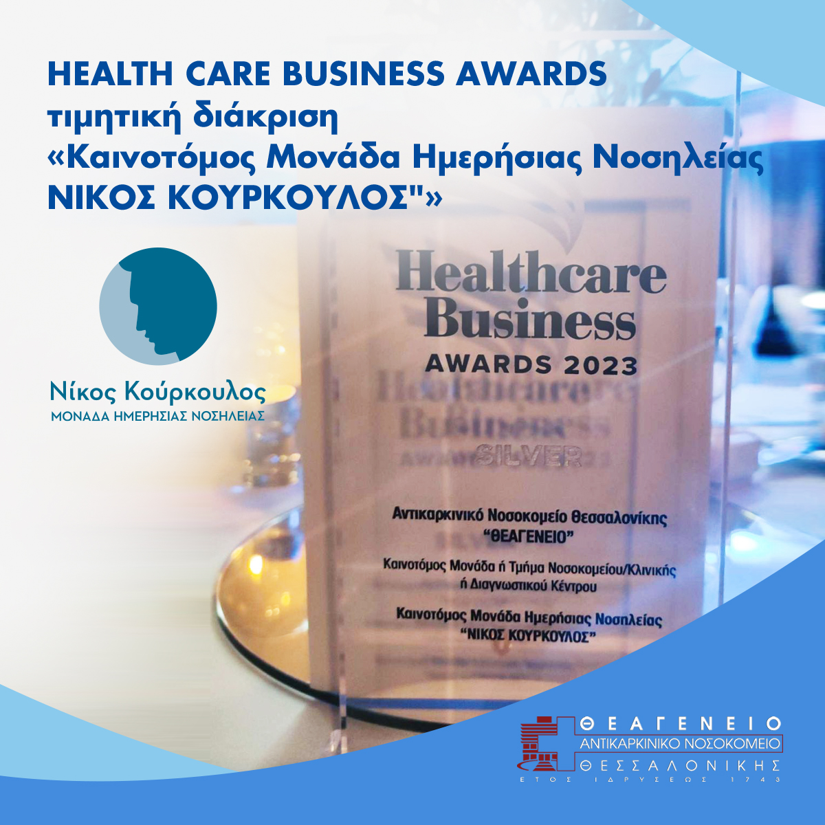 Με αφορμή την από 23/10/2023 Silver τιμητική διάκριση της Μ.Η.Ν. «Ν. Κούρκουλος» του Α.Ν.Θ. «Θεαγένειο», η οποία βραβεύτηκε ως «ΚΑΙΝΟΤΟΜΟΣ ΜΟΝΑΔΑ» για το έτος 2023, από τα 8α Healthcare Business Awards, θα θέλαμε να ευχαριστήσουμε για αυτό το τόσο σημαντικό έργο: